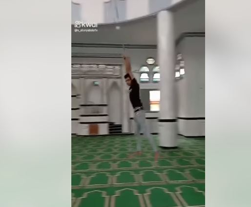 تداول رواد مواقع التواصل الاجتماعي المختلفة فيديو لشباب يلعبون ومن ضمنهم شاب يتأرجح بحبل داخل أحد المساجد في مصر، بينما يقوم آخر بتصويره، ثم يتدخّل شاب منهم بإطلاق السباب على آخرين ويطالبهم بالابتعاد لأنه يصوّر.