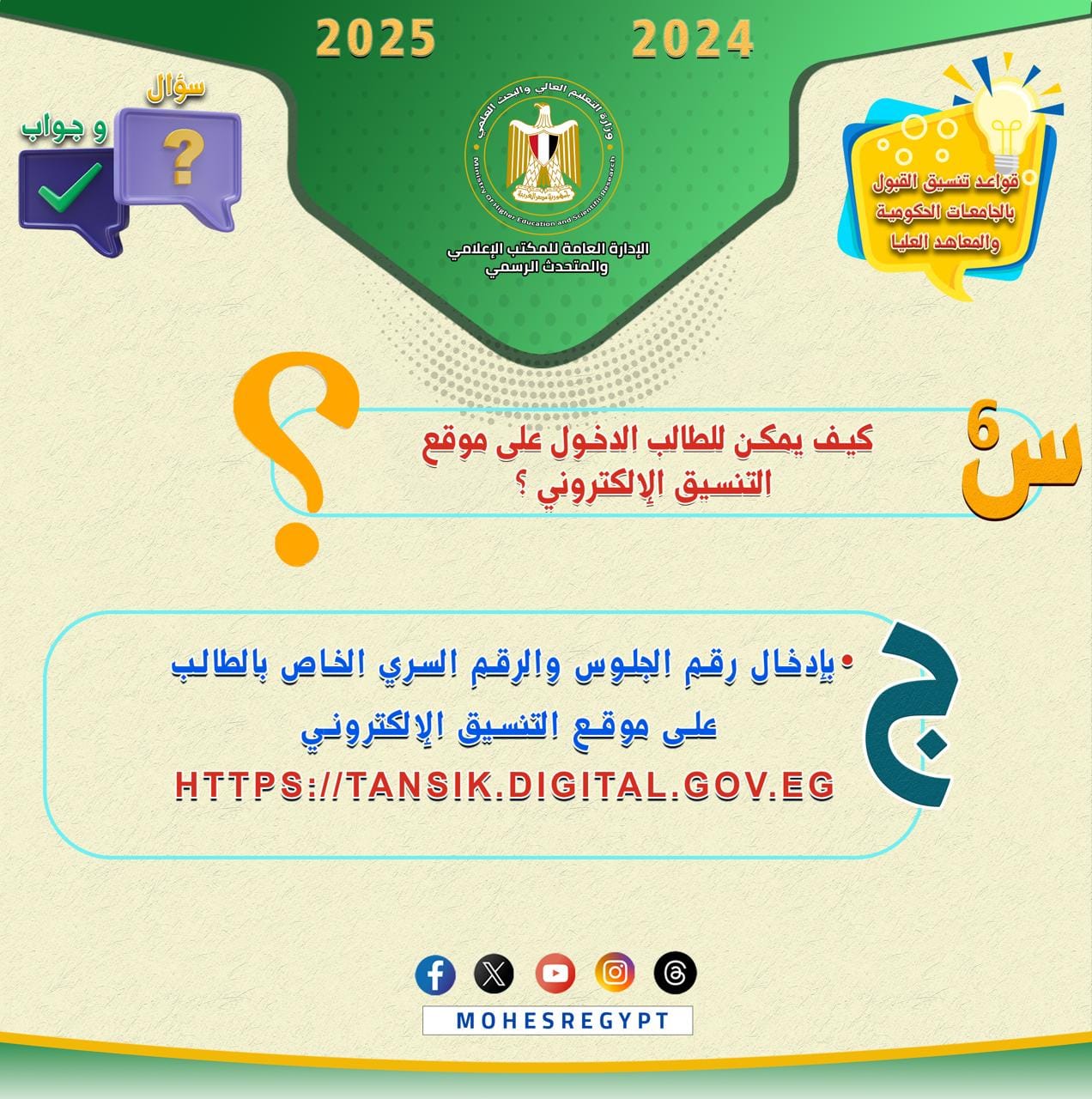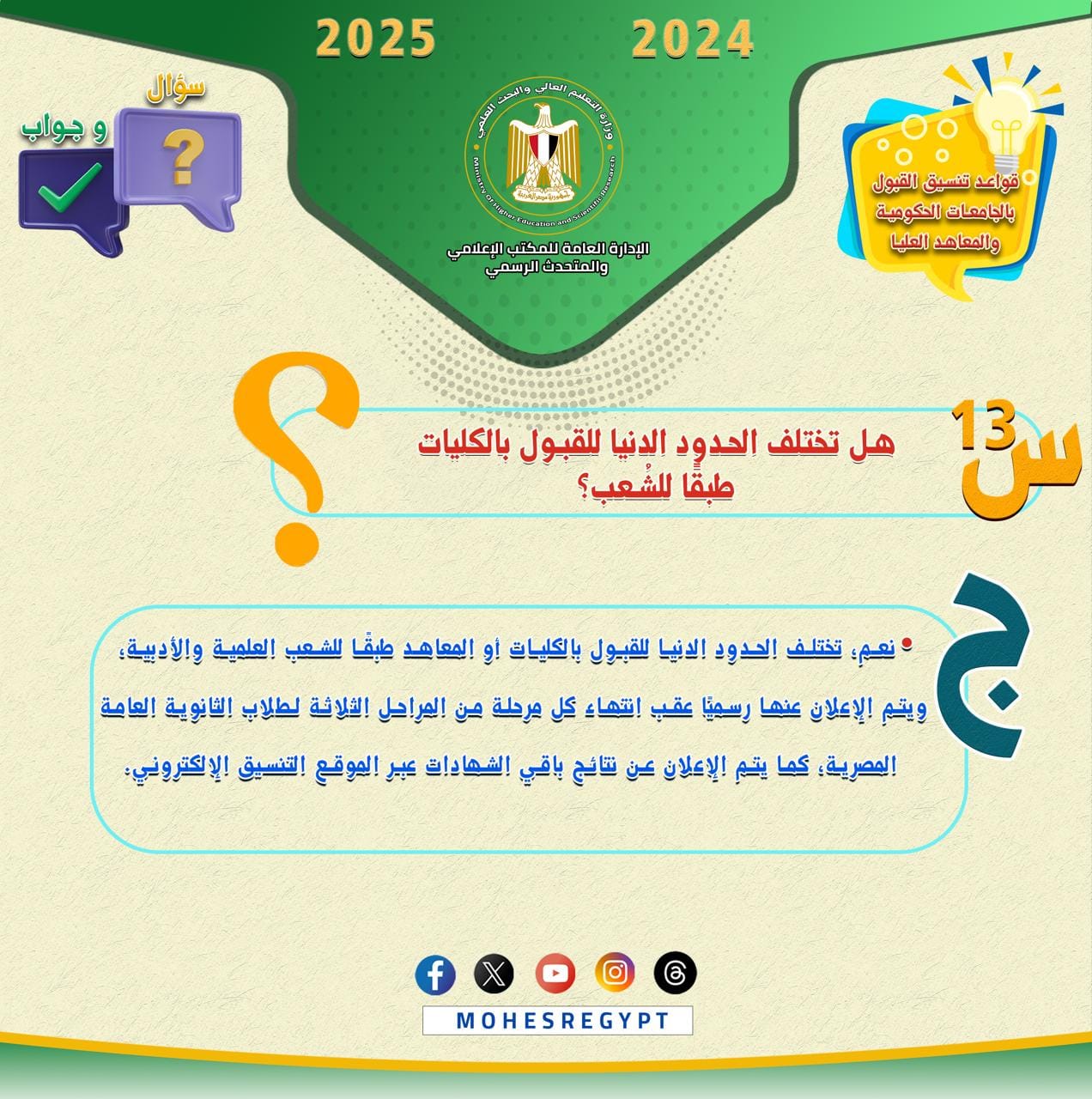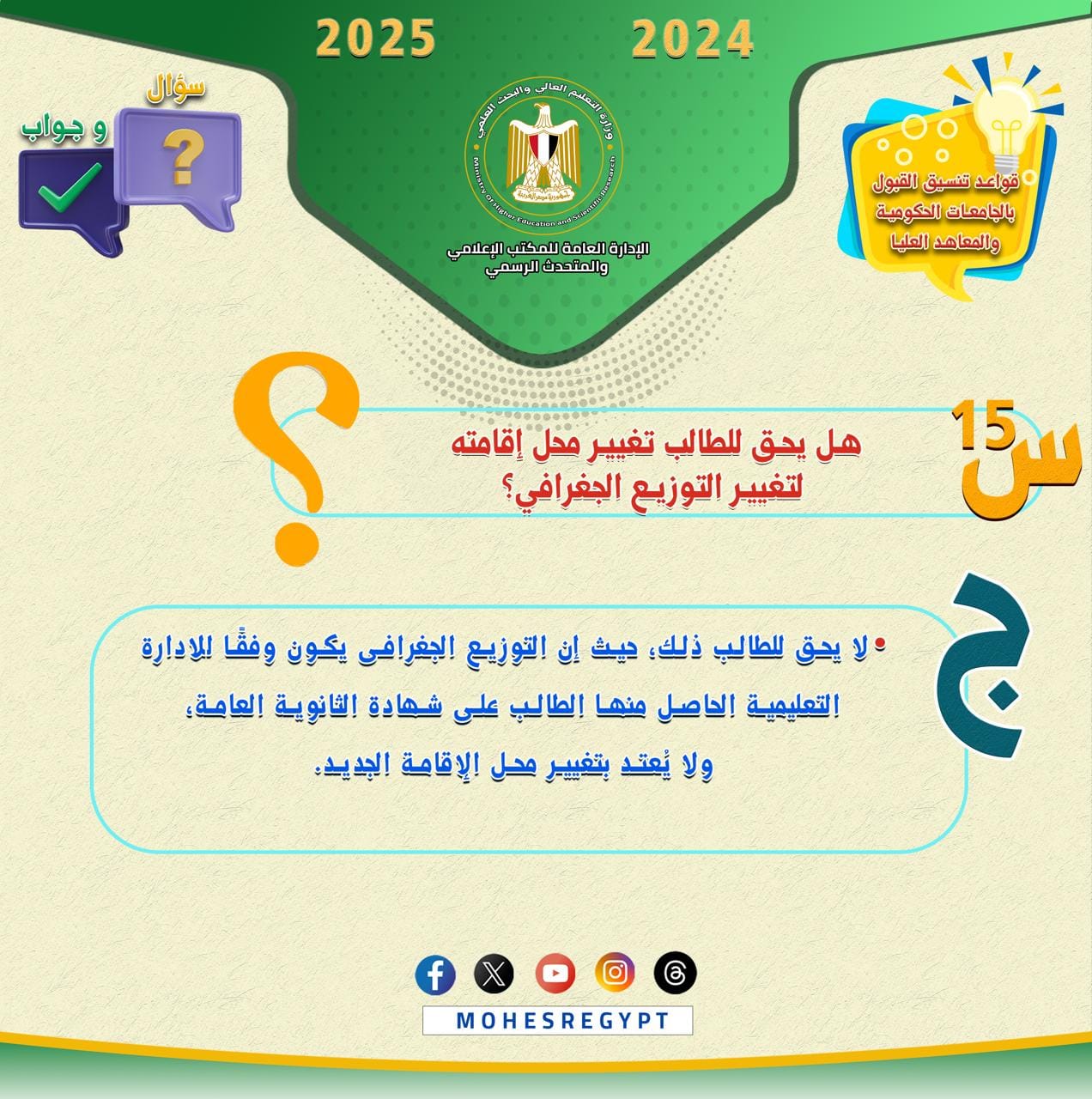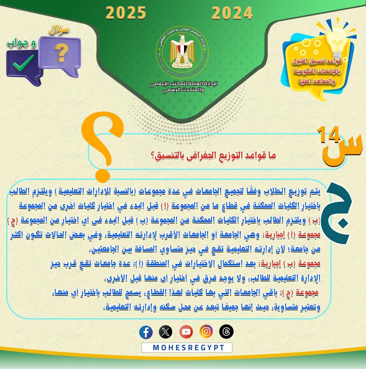 "سؤال وجواب".. انفوجرافات حول تنسيق القبول بالجامعات الحكومية والمعاهد لطلاب الثانوية العامة