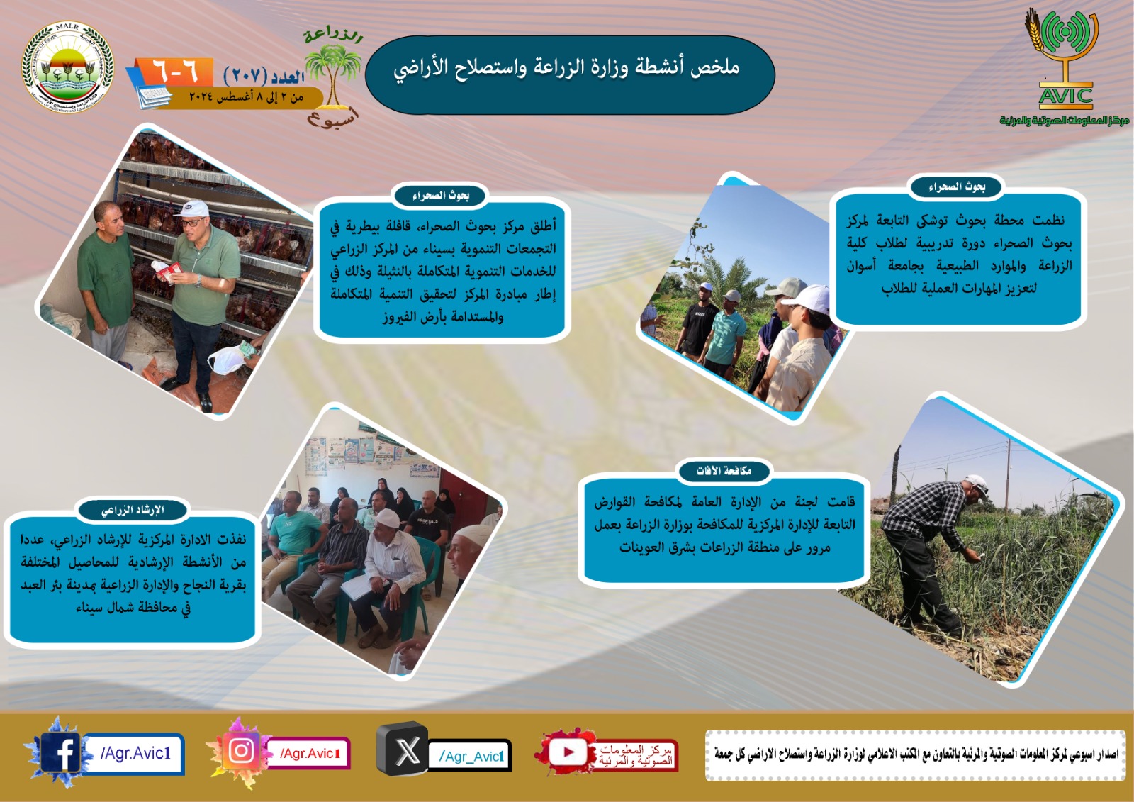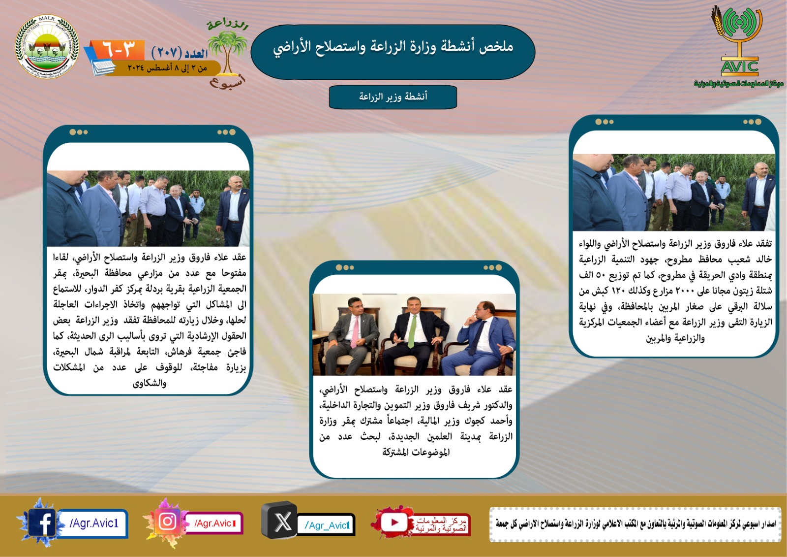 بالانفوجراف| "الزراعة في اسبوع" نشرة الحصاد رقم ٢٠٧ لأنشطة الوزارة