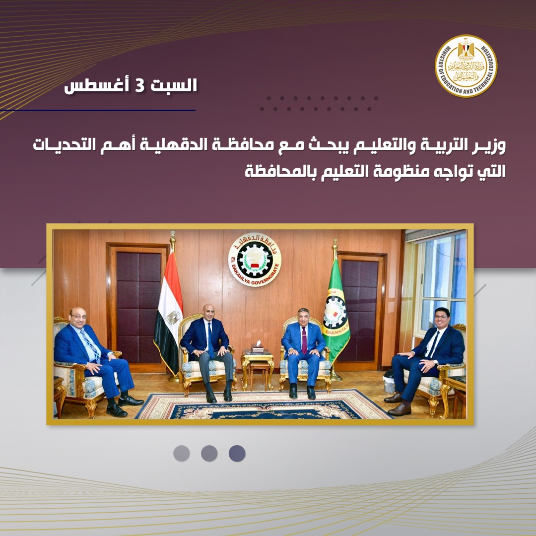 ومن جهته، رحب اللواء طارق مرزوق محافظ الدقهلية بزيارة الوزير للمحافظة، مؤكدًا التزام المحافظة بتقديم كل أشكال الدعم للارتقاء بالعملية التعليمية.