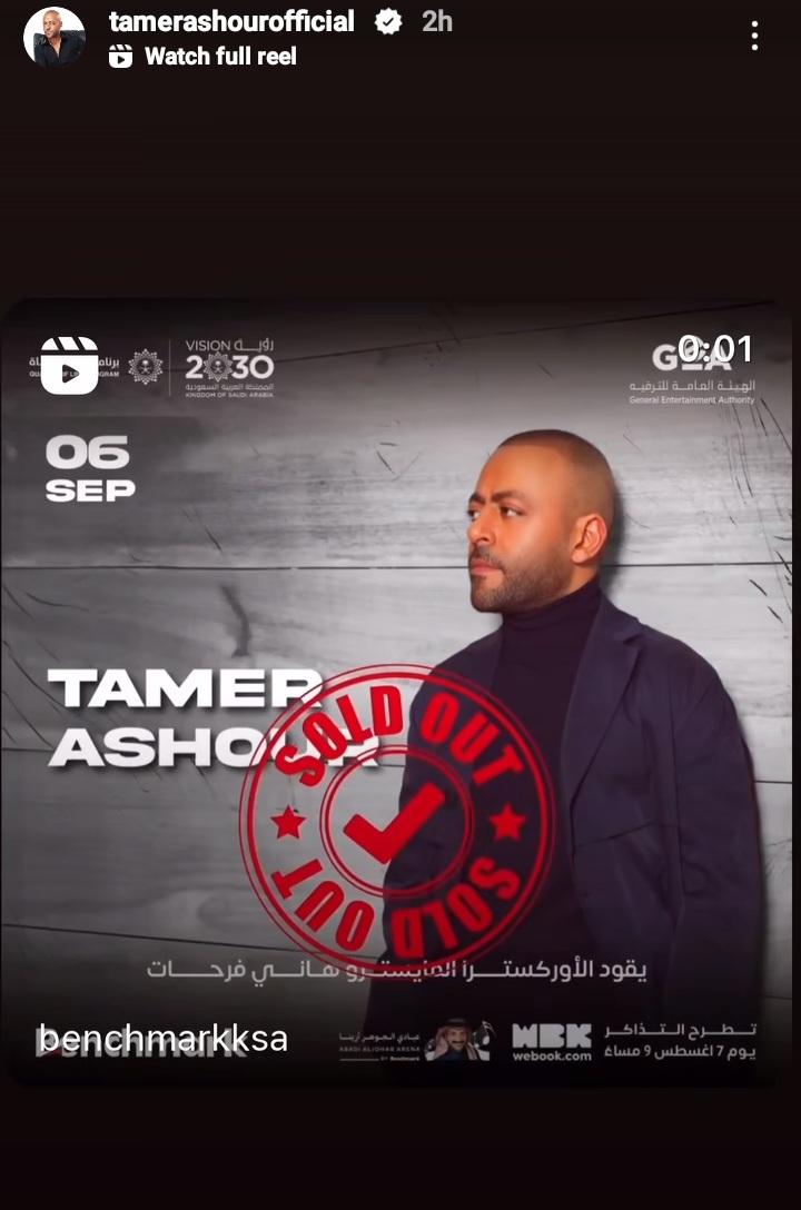 كامل العدد.. نفاذ تذاكر حفل تامر عاشور في جدة (صورة)