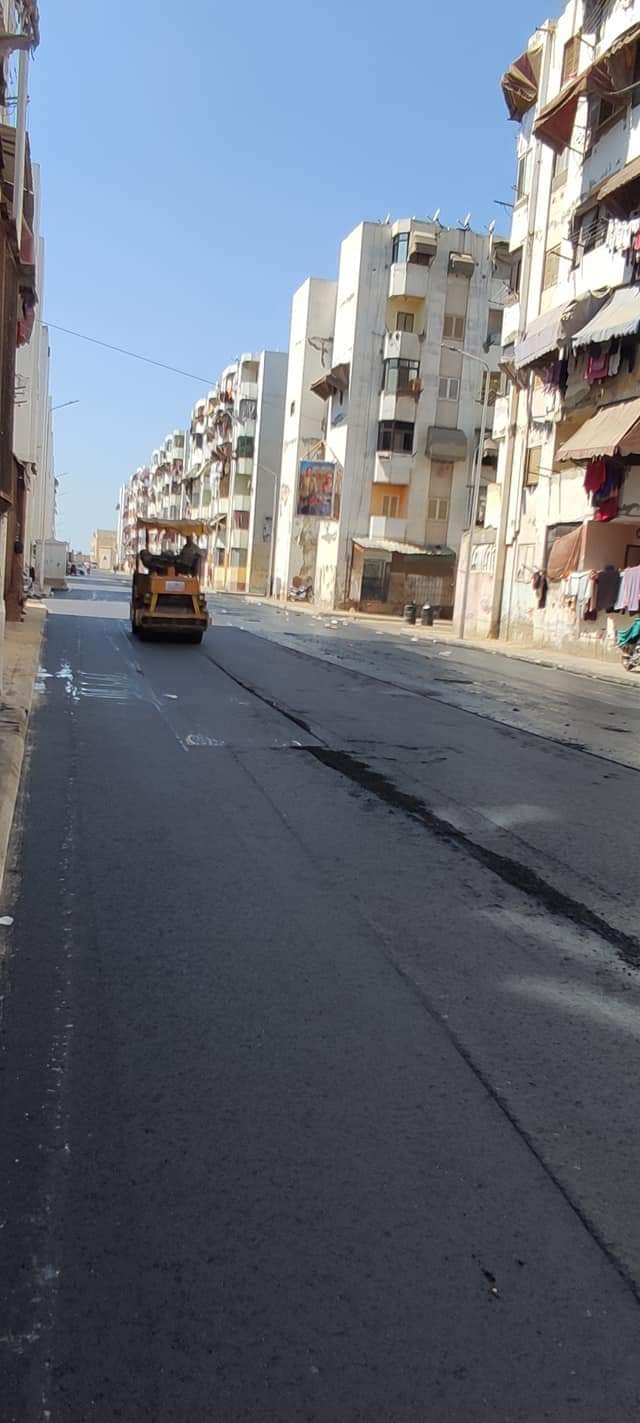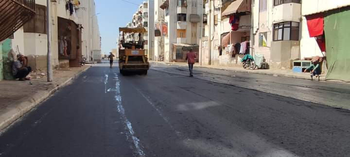استمرار أعمال وضع الطبقة الاسفلتية بمنطقة السيدة "خديجة" بنطاق حي الضواحى ببورسعيد