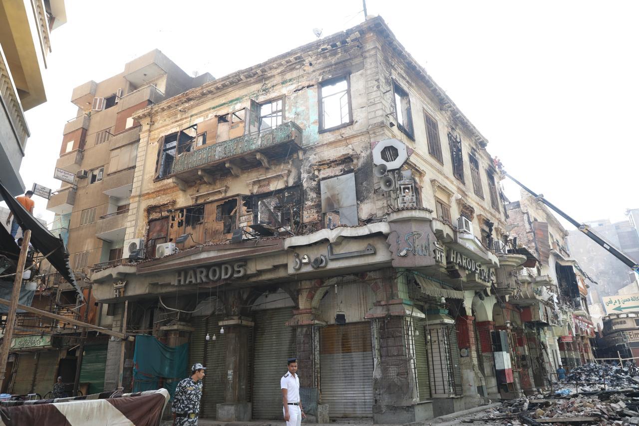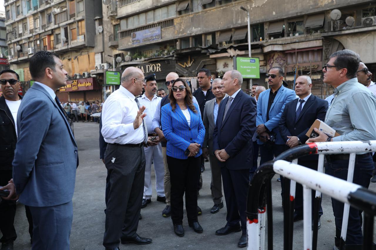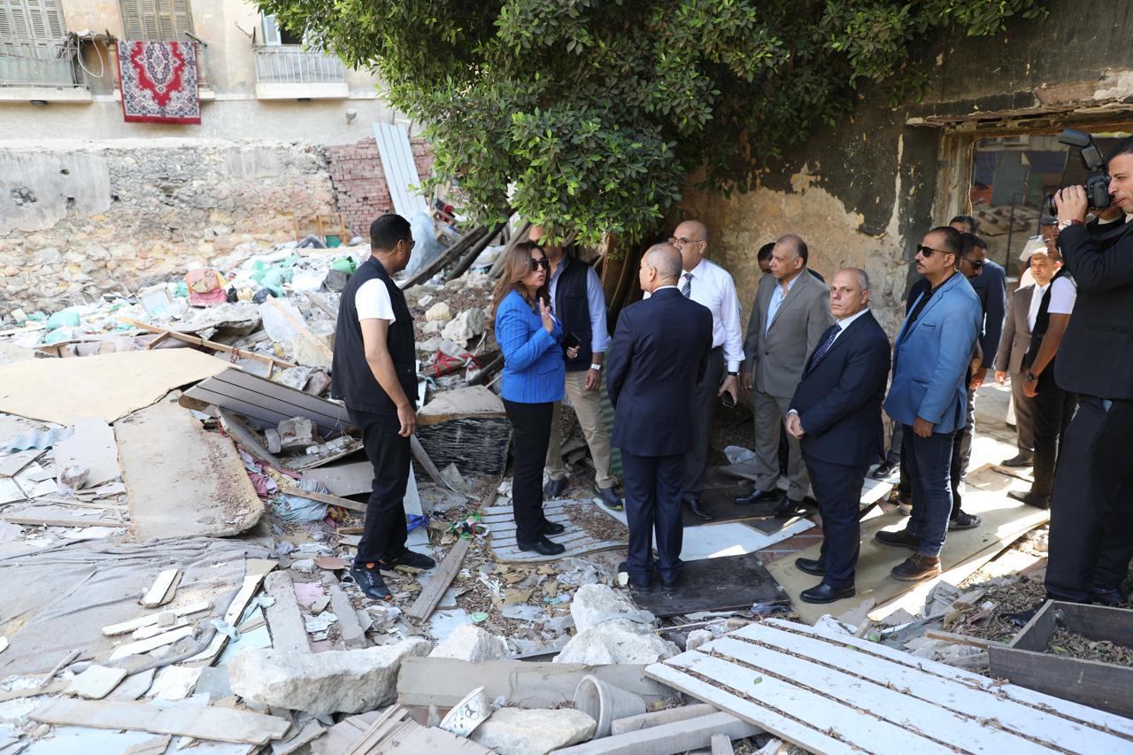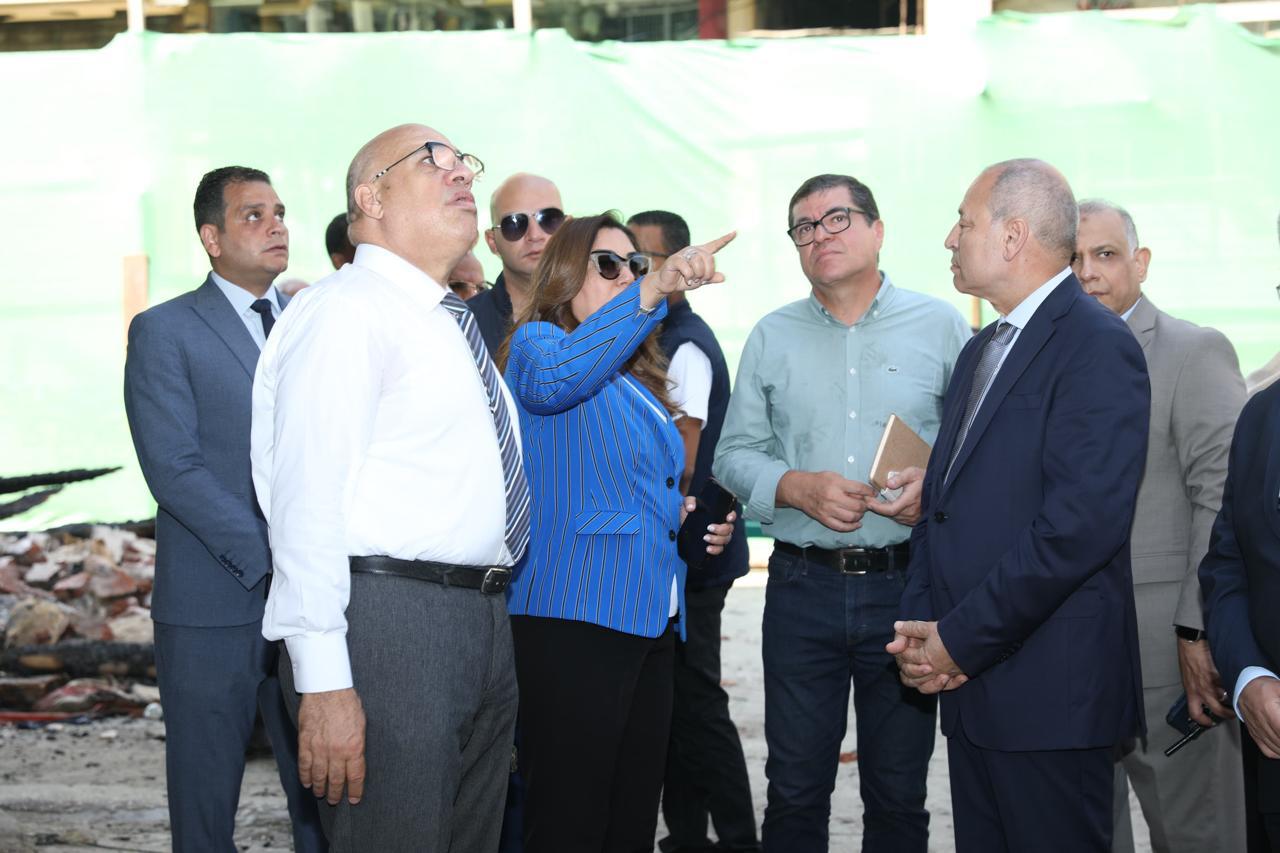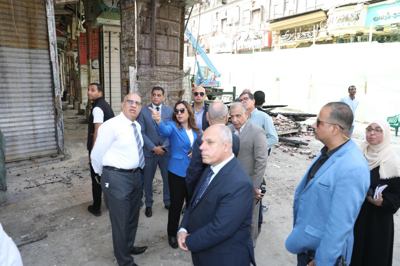 وزيرة التنمية المحلية ومحافظ القاهرة يتفقدان أعمال إزالة حريق عقاري الموسكي - صور