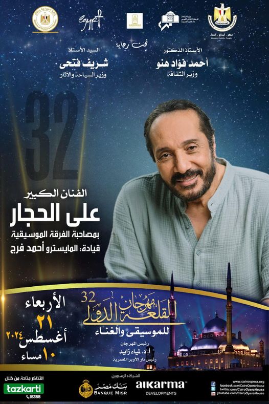 يحيى الفنان على الحجار حفله ضمن فعاليات مهرجان القلعة يوم 21 أغسطس الحالى في دورته الـ 32 والذى يشهد حضور جماهيري كبير.