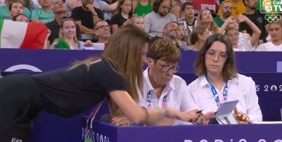 خطفت كلوديا مانتشينيللي مدربة فريق الجمباز الإيطالي الأضواء عبر مواقع التواصل بعد ظهورها في فيديو وهي تتوجه إلى الحكام لتقديم استفسار نيابة عن لاعبه بأولمبياد باريس 2024.