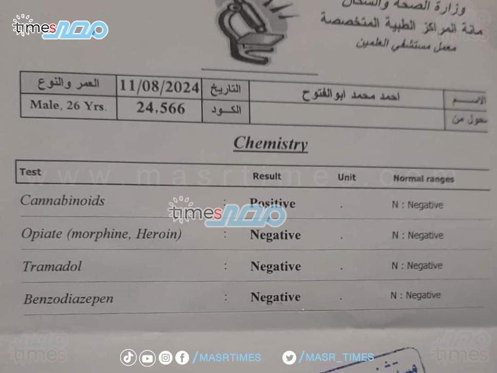 وكشفت نتائج التحليلات الطبية التي اجريت للاعب أحمد فتوح لاعب نادي الزمالك، إيجابية العينة في تحليل المخدرات بعد حادث الساحل الشمالي.