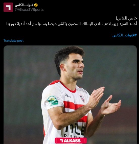 ولم تصرح قناة الكأس عن أي تفاصيل في العرض المقدم لـ زيزو، وكذالك اسم النادي الذي يرغب في التعاقد مع زيزو خلال الانتقالات الصيفية الجارية.