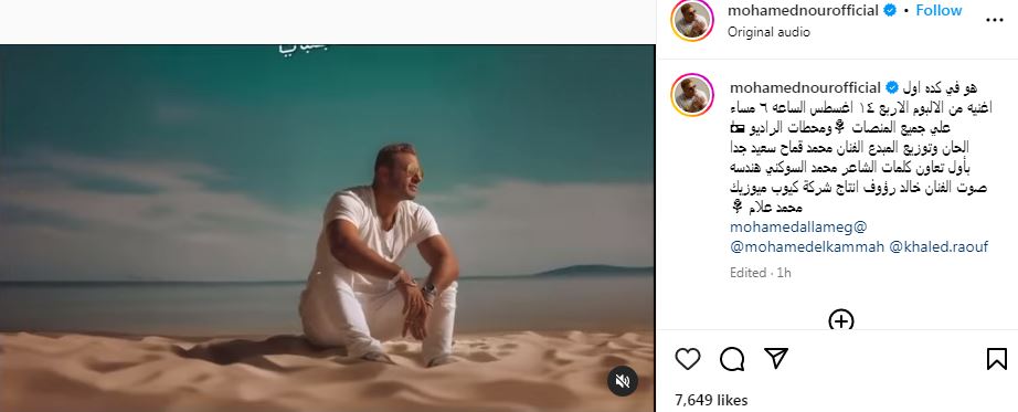 ونشر محمد نور، عبر حسابه على موقع التواصل الاجتماعي "إنستجرام"، مقطع فيديو من الأغنية، وعلق: «هو في كده، أول أغنية من الألبوم الأربعاء 14 أغسطس الساعة 6 مساء على جميع المنصات، ومحطات الراديو، سعيد جدا بأول تعاون كلمات الشاعر محمد السكني».