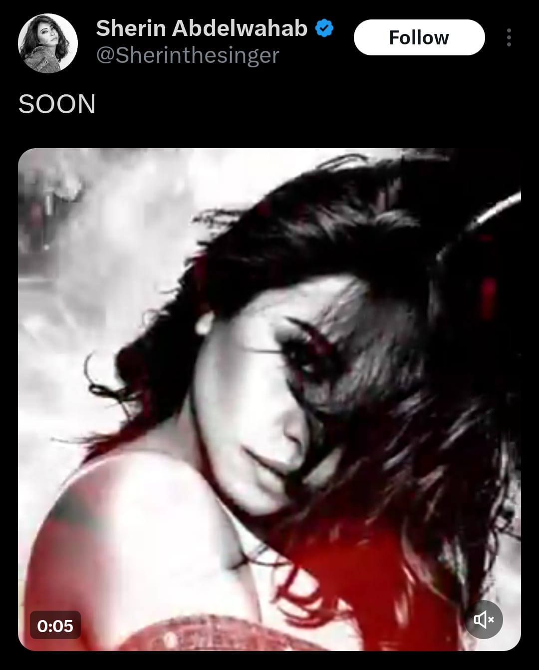 ونشرت شيرين عبد الوهاب برومو دعائي لألبومها الجديد على صفحتها الرسمية عبر منصة "إكس" وعلقت قائلة: قريبا.