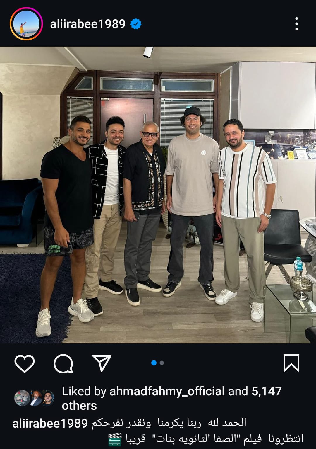 نشر علي ربيع صورة على صفحته الرسمية عبر موقع تبادل الصور والفيديوهات "إنستجرام" وعلق قائلا : "الحمد لله ربنا يكرمنا ونقدر نفرحكم، انتظرونا فيلم الصفا الثانوية بنات قريبا".