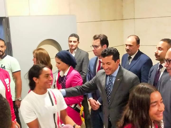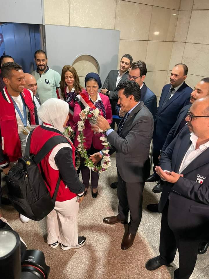 وزير الشباب والرياضة يستقبل أبطال مصر في الاولمبياد بمطار القاهرة "صور"