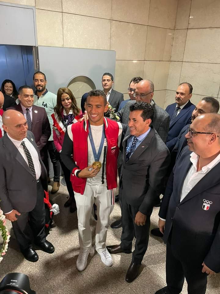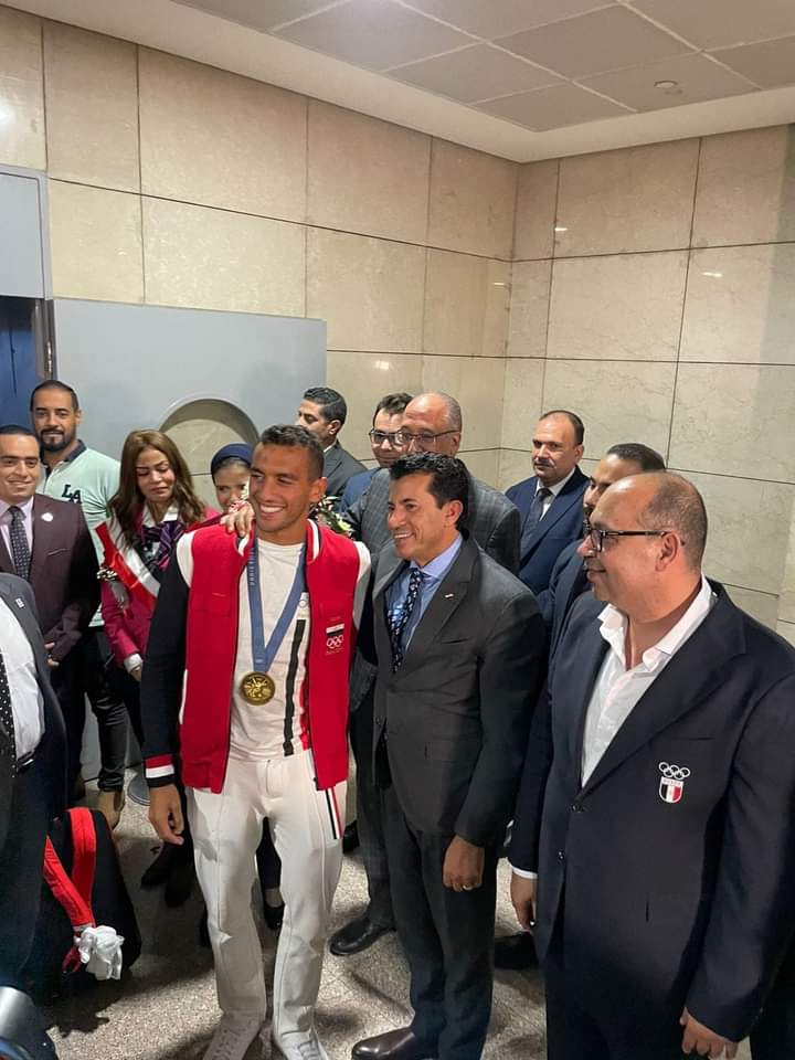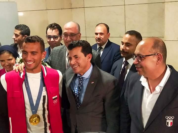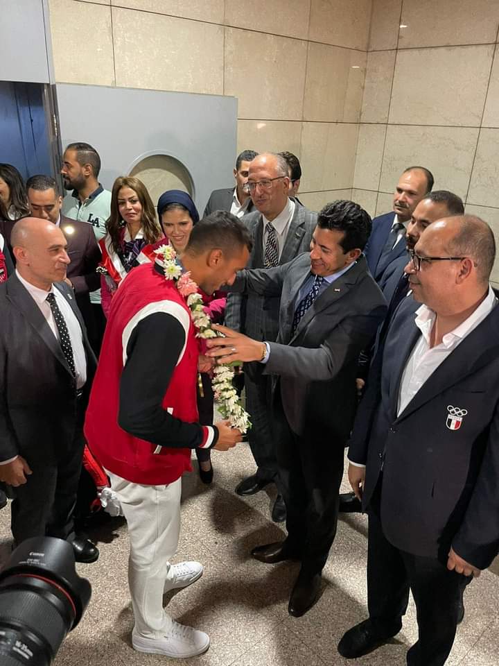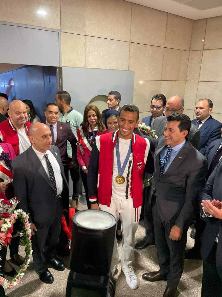استقبل الدكتور اشرف صبحي وزير الشباب والرياضة بمطار القاهرة الدولى أبطال مصر الحاصلين على الميداليات الأوليمبية وذلك ضمن منافسات دورة الألعاب الأوليمبية باريس 2024 أحمد الجندى لاعب المنتخب المصري للخماسي الحديث والحاصل على الميدالية الذهبية وسارة سمير الحاصلة على الميدالية الفضية وكذلك جميع اللاعبين القادمين عقب انتهاء منافسات الدورة الأوليمبية.
