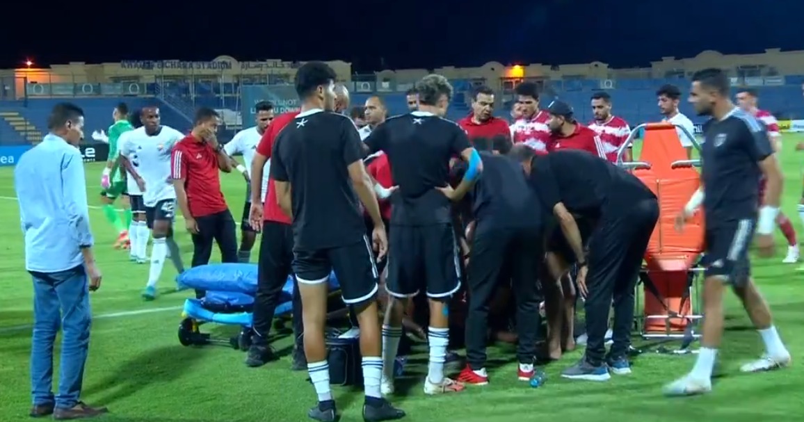 ثم خرج اللاعب في عربة الإسعاف إلى أقرب مستشفى من ملعب مباراة الجونة وبلدية المحلة.