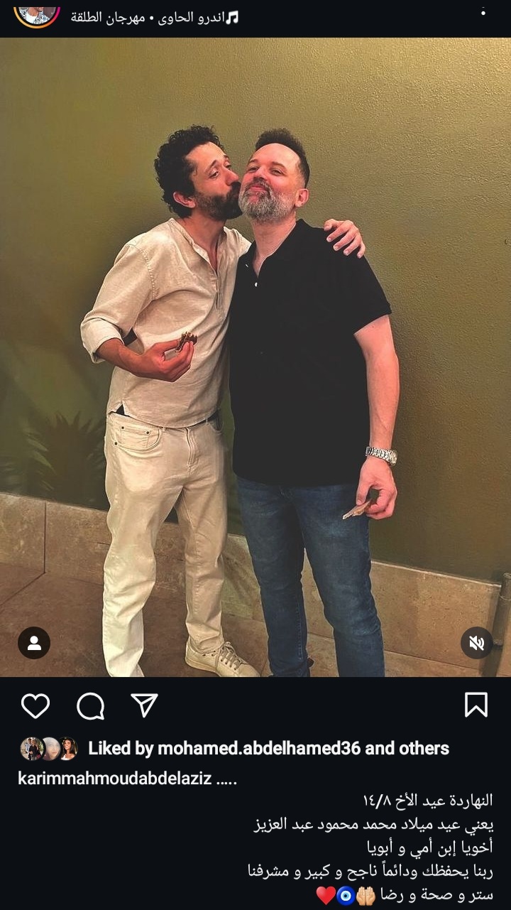 هنأ النجم كريم محمود عبد العزيز بعيد ميلاده عبر صفحته الرسمية " إنستجرام" ونشر كريم صورة تجمعه بشقيقه محمد محمود عبد العزيز وعلق عليها" النهاردة عيد الأخ يعني عيد ميلاد محمد محمود عبد العزيز أخويا إبن أمي وأبويا"