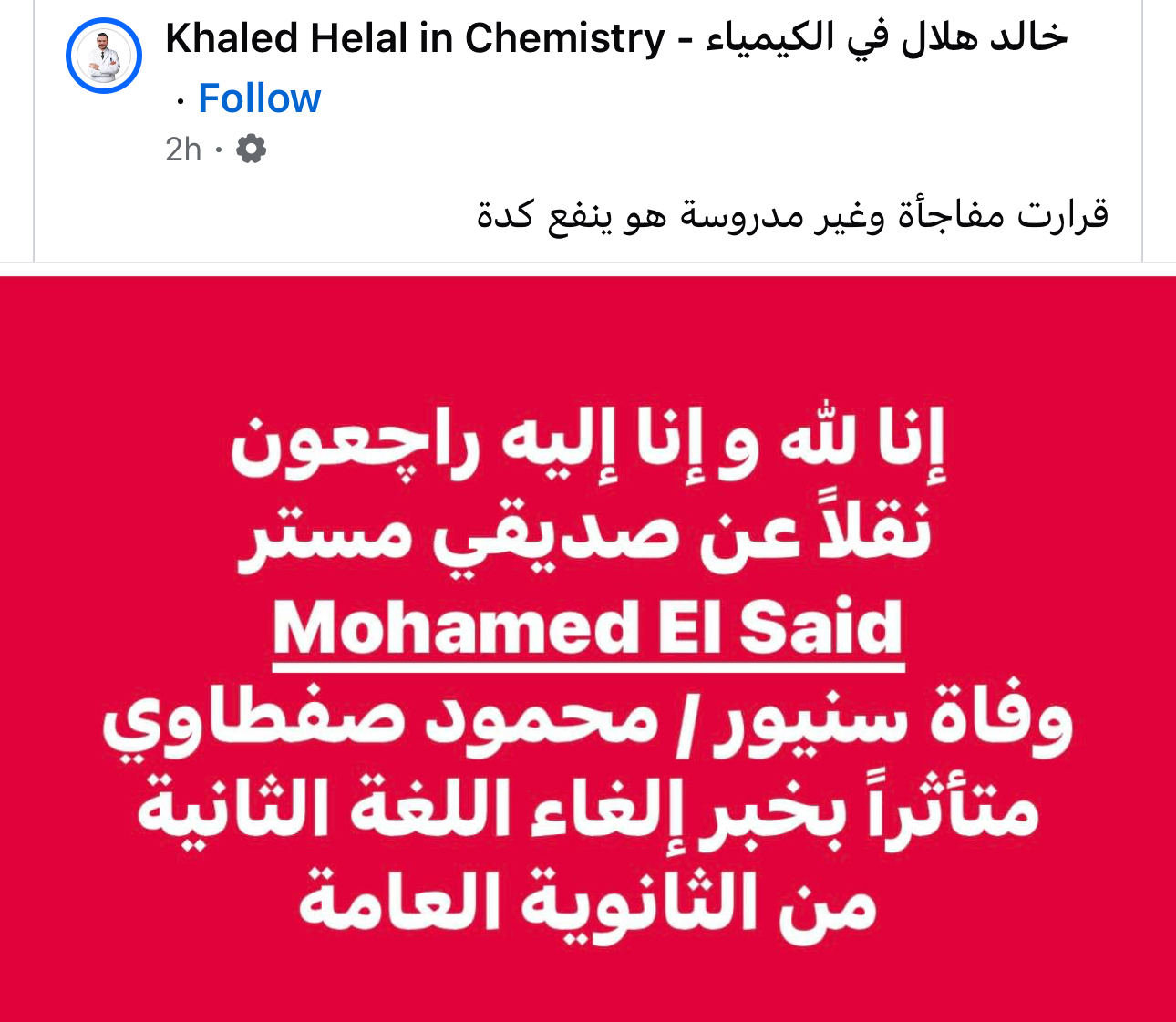 تداول رواد مواقع التواصل الاجتماعى ، منشورات نعى لمدرس فرنساوى يدعى محمود صفطاوي ، توفى بعد إصابته بأزمة قلبية عقب قرارات وزير التربية والتعليم بعدم إضافة اللغة الثانية للمجموع.