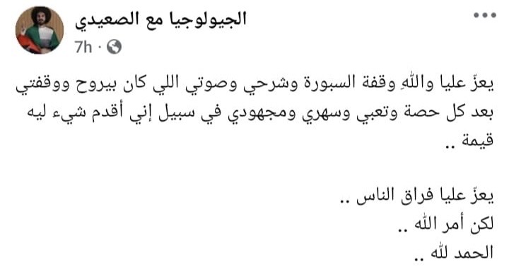 المدرس الثانى وهى استاذ جيولوجيا ، كتب رسالة مؤثرة لطلابه بعد قرار عدم إضافة الجيولوجيا للمجموع، وقال المدرس:" يعز عليا والله وقفة السبورة وشرحى وصوتى اللى كان بيروح ووقفتى بعد كل حصة وتعبى وسهرى ومجهودى فى سبيل إنى أقدم شئ ليه قيمة ".