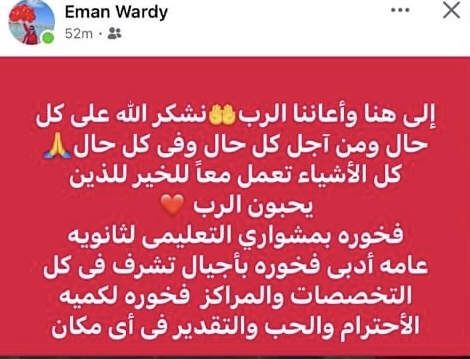 والمدرسة الثالثة هى أستاذة على نفس ، قالت :"فخورة بمشوارى التعليمى لثانوية عامة أدبى وفخورة بأجيال تشرف فى كل التخصصات والمراكز".