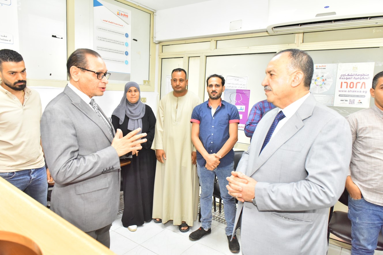 حيث حرص المحافظ على تفقد اقسام جهاز تنمية المشروعات المتوسطة والصغيرة ومتابعة سير العمل بمختلف الاقسام مشيدا بمستوى الخدمات المقدمة للمواطنين وتنظيم العمل وتبسيط الإجراءات .