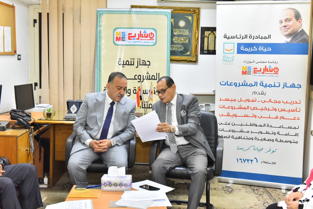 كما إلتقى المحافظ – خلال زيارته لمقر الجهاز –رئيس الفرع ومديرى الادارات والأقسام، لاستعراض بعض المشروعات والأنشطة التى ينفذها الجهاز والخدمات المالية والغير مالية التى يقدمها لاصحاب المشروعات ومؤسسات المجتمع المدنى والأسر المنتجة ودعم أصحاب المشروعات والمرأة المعيلة موجهاً بضرورة تشبيك كافة الجهات لدعم الشباب والخريجين وأصحاب المشروعات ومساعدتهم فى تسويق منتجاتهم واستخراج تراخيص المحال والمشروعات.