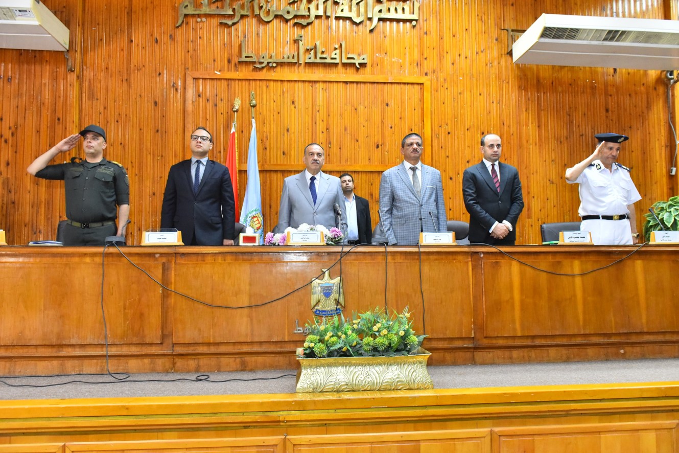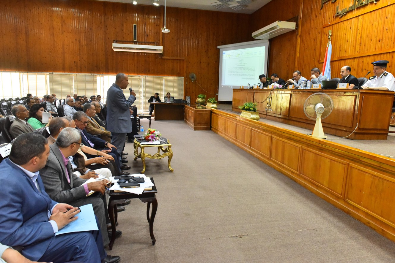 ترأس اللواء هشام أبو النصر محافظ أسيوط، جلسة المجلس التنفيذي للمحافظة، موجهاً بتكثيف الجهود لاستكمال تطوير الميادين بالمراكز والاحياء بشكل حضاري ووفقاً لخطة التنسيق الحضاري للمدن للقضاء على الإشغالات ومنعاً للزحام المرورى، موجهاً باستكمال ملفات التصالح وتقنين أراضي أملاك الدولة تنفيذًا للقانون، جاء ذلك بحضور الدكتور مينا عماد نائب المحافظ والمحاسب عدلي أبو عقيل السكرتير العام المساعد والمستشار محمد محمود كامل وكيل مجلس الدولة، المستشار القانوني لمحافظة أسيوط واللواء حسام أنور مساعد مدير أمن أسيوط، والمقدم أركان حرب محمد إسماعيل مدكور القائم بأعمال مستشار عسكري أسيوط ومديري مديريات الخدمات ورؤساء المراكز والأحياء ومديرى إدارات الديوان العام والمشاريع وشركات المرافق.