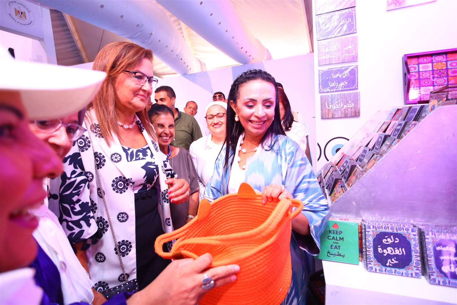 وتفقدت وزيرة التضامن الاجتماعي والحضور أروقة المعرض الذي يقام على مساحة 2000 متر، بمنطقة أرض المعارض بمهرجان العلمين الجديدة بالساحل الشمالي، بمشاركة 76 عارضاً ينقسمون إلى 54 عارضًا من الأسر المنتجة لوزارة التضامن الاجتماعي، إلى جانب مشاركة 22 من رائدات الأعمال بالمجلس القومي للمرأة بهدف توفير فرص تسويقية لمشروعاتهن الحرفية.