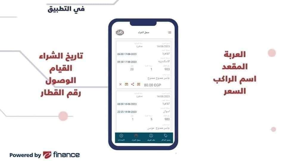5) الحجز عن طريق تطبيق الهاتف المحمول Egyptian National Railwaysويتم الحصول عليه من على متاجر التطبيقات الالكترونية Play store & App store .