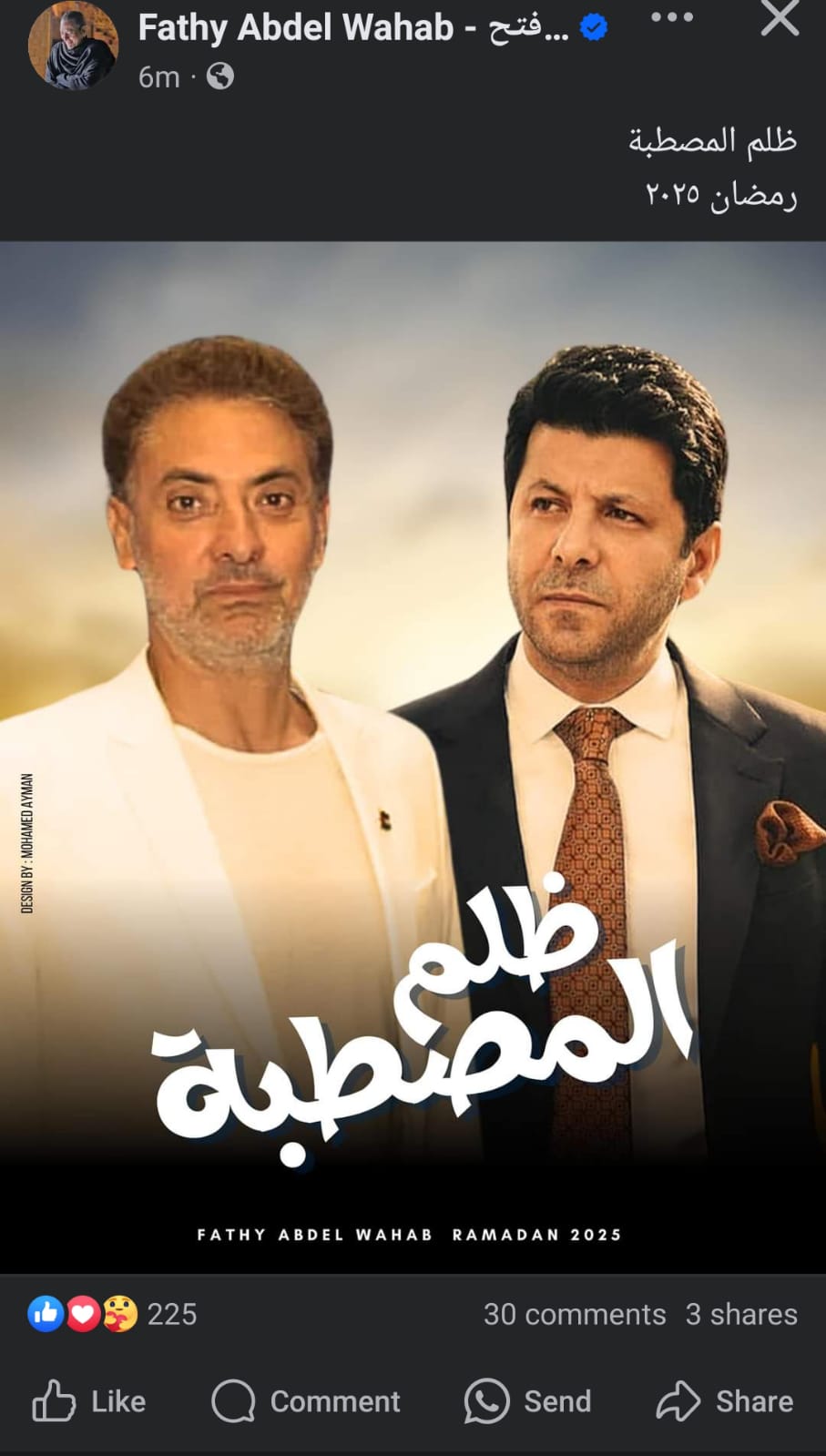 أعلن الفنان فتحي عبد الوهاب منذ قليل عن مشاركته في السباق الرمضاني القادم 2025 بمسلسل "ظلم المصطبة" بطولة الفنان إياد نصار.