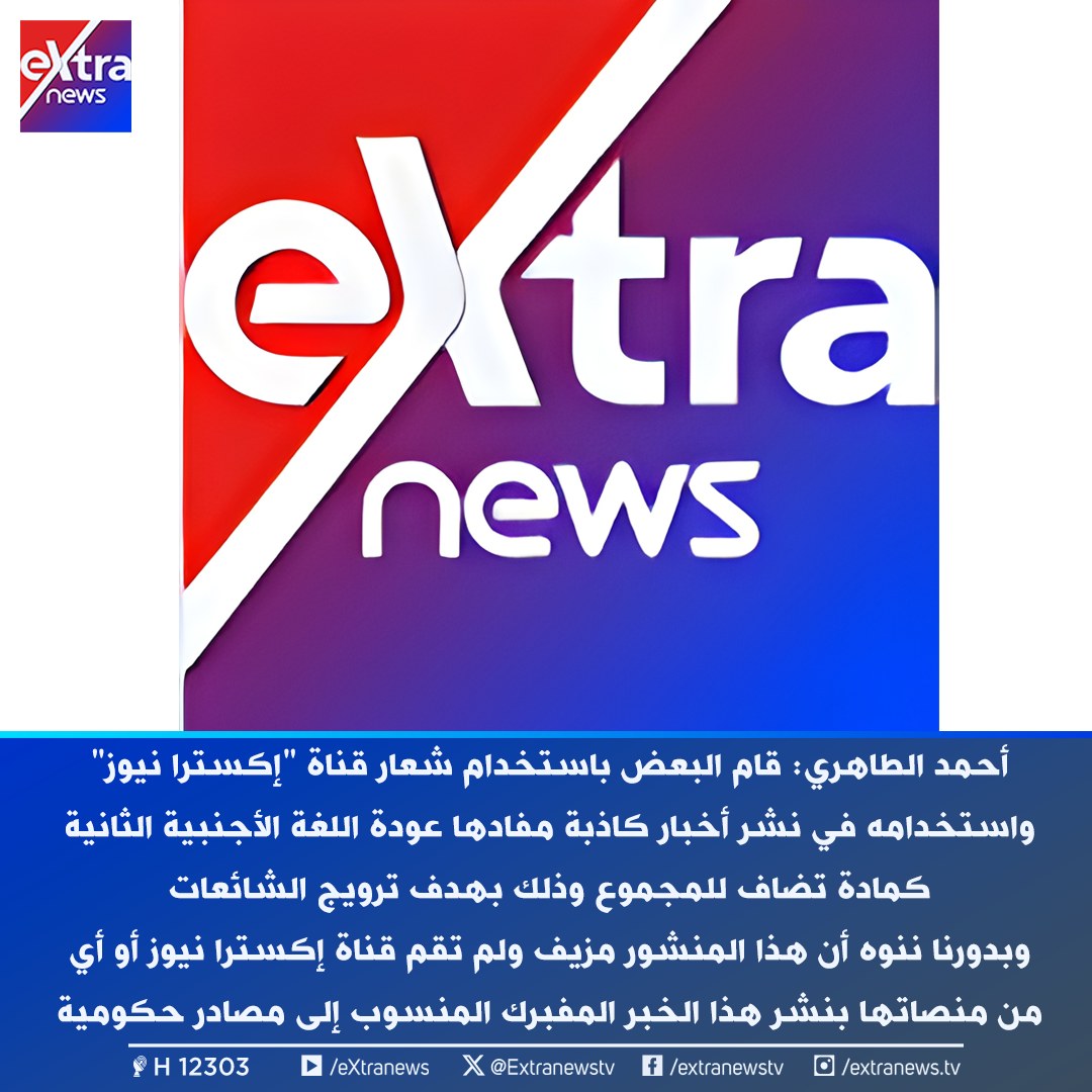 وأضاف: “وذلك بهدف ترويج الشائعات وبدورنا ننوه أن هذا المنشور مزيف ولم تقم قناة إكسترا نيوز أو أي من منصاتها بنشر هذا الخبر المفبرك المنسوب إلى مصادر حكومية”.