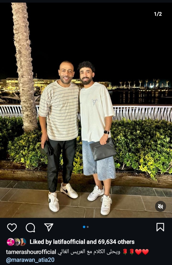 شارك النجم تامر عاشور متابعيه عبر صفحته الرسمية " إنستجرام" صورا جديدة مع مروان عطية لاعب وسط النادي الأهلي ، وعلق تامر عاشور علي الصور “ و يحلي الكلام مع العريس الغالي”.