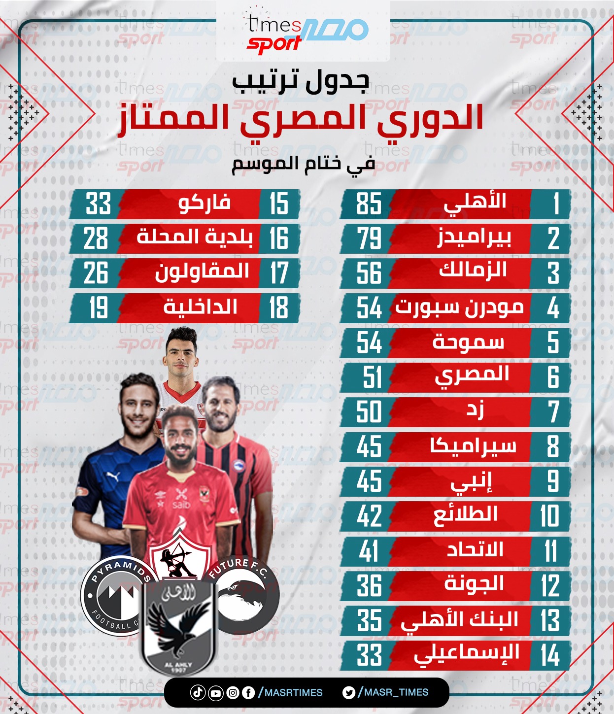 جدول ترتيب الدوري المصري الممتاز في ختام الموسم