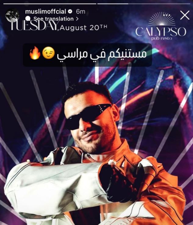 ونشر مسلم عبر صفحته الرسمية "إنستجرام البوستر الدعائي للحفل وكتب "مستنيكم في مراسي 20 أغسطس".