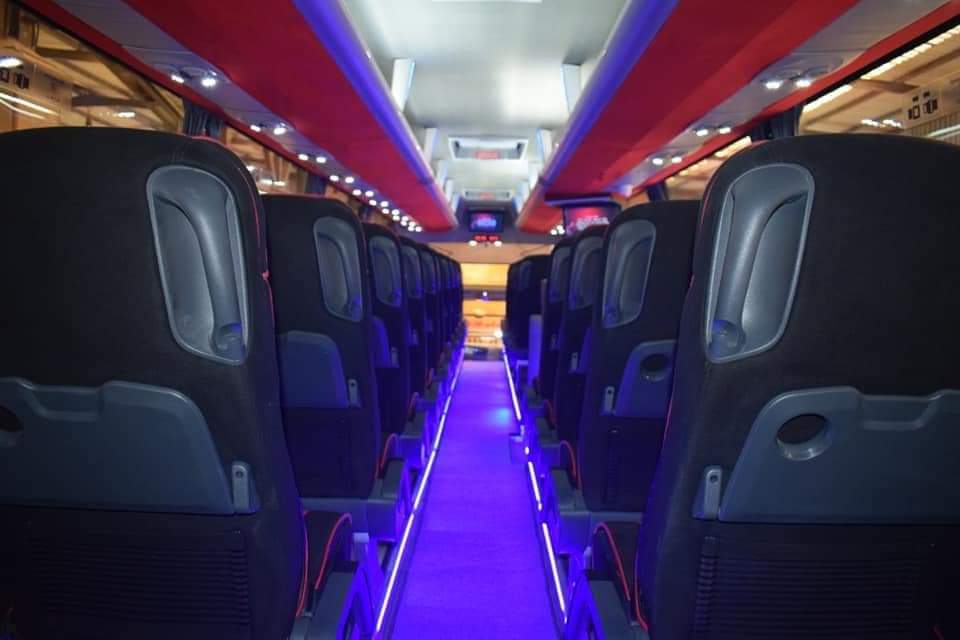 * تمتلك الشركة أسطولاً متنوعاً يضم أحدث وأفضل أنواع الحافلات بموديلات مختلفة، وأحجام متفاوتة تم تصميمها بصورة تضمن توفير كافة وسائل الراحة، وسبل الأمان، وتحقيق مستوى متميز من الرفاهية لعملائنا،بما يضمن سلاسة تنقلهم، وتيسير رحلاتهم.
