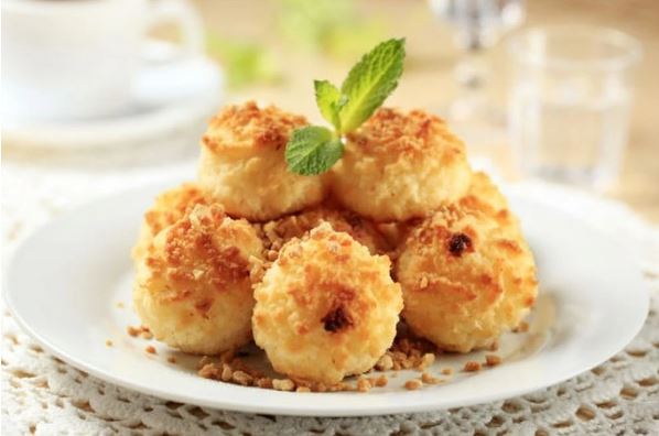 ضعي في وعاء كلاً من جوز الهند والسكر والحليب البودرة والفانيليا وحركي المكونات حتى تختلط مع بعضها جيداً.