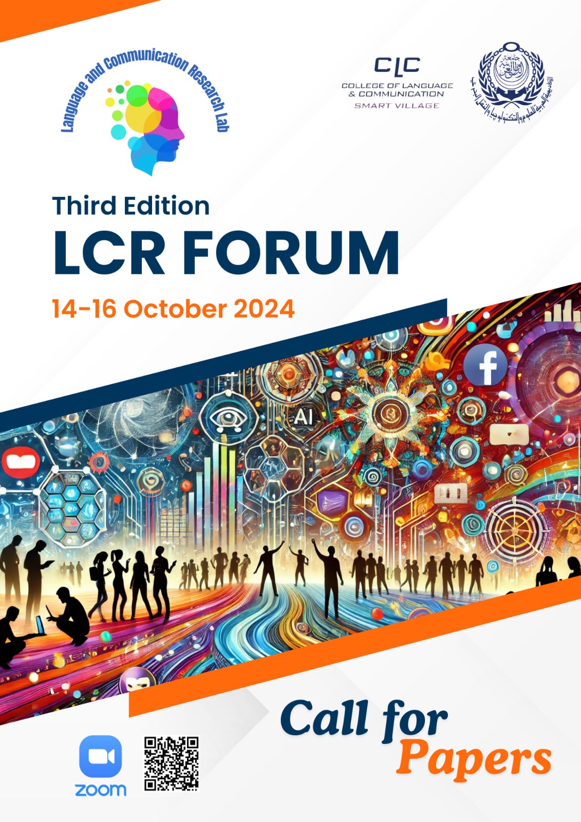 تطلق كلية اللغة والاعلام بالقرية الذكية الملتقي الدولي العلمي الثالث لها هذا العام عن الاعلام الجديد وتمكين الشباب: المواطنة الرقمية في عصر الذكاء الاصطناعي (LCR Forum 2024) في الفترة من 14-16 أكتوبر 2024 بمقر الأكاديمية العربية للعلوم والتكنولوجيا و النقل البحري (AASTMT) بالقرية الذكية.