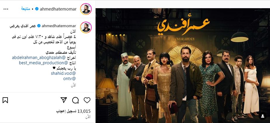 مواعيد عرض"عمر أفندي" والقنوات الناقلة