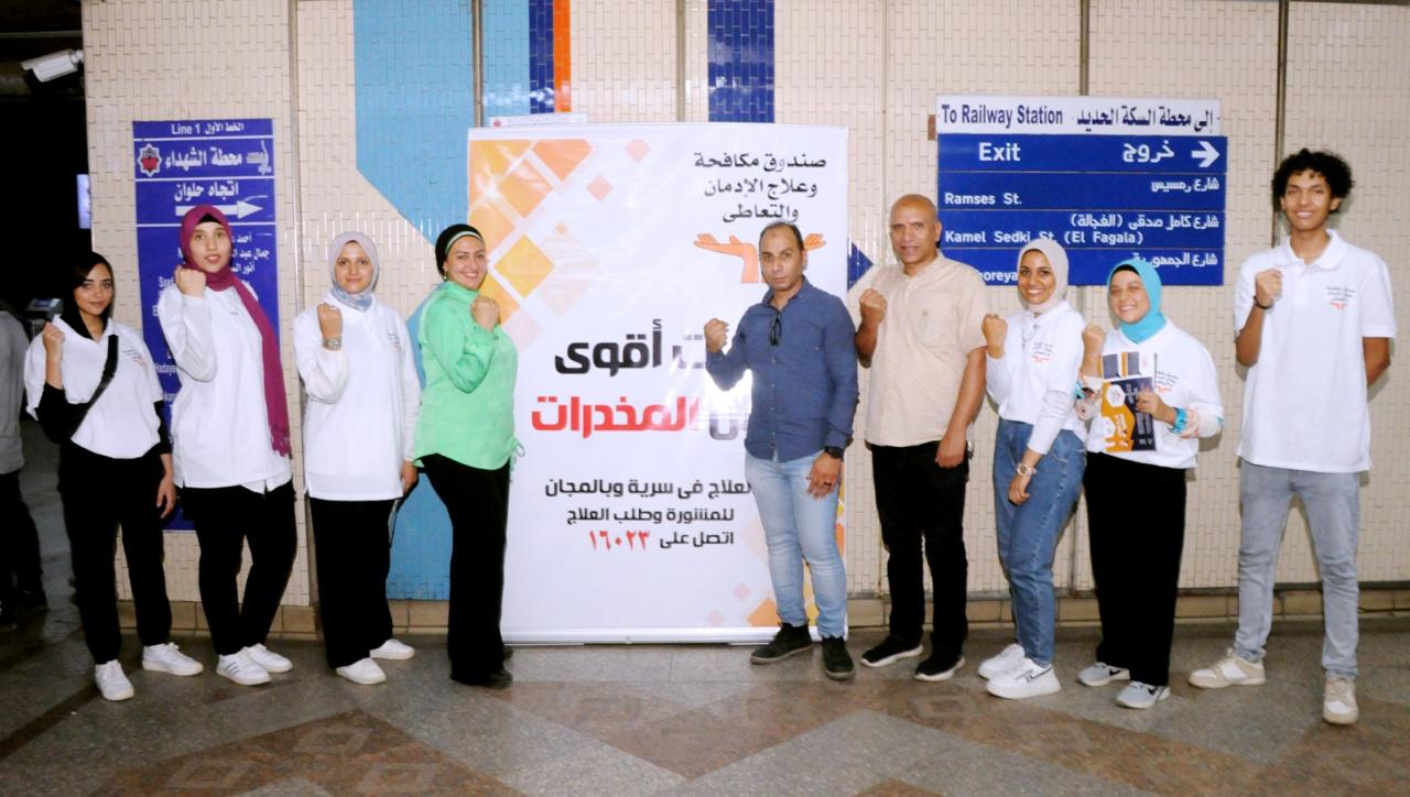 استمرارًا لتنفيذ حملات التوعية، أطلق صندوق مكافحة وعلاج الإدمان والتعاطى برئاسة الدكتورة مايا مرسى وزيرة التضامن الاجتماعي ورئيس مجلس إدارة الصندوق مبادرة جديدة لرفع وعي مرتادي مترو الأنفاق بمخاطر تعاطى وإدمان المواد المخدرة وذلك بالتعاون مع الشركة المصرية لإدارة وتشغيل مترو الأنفاق.