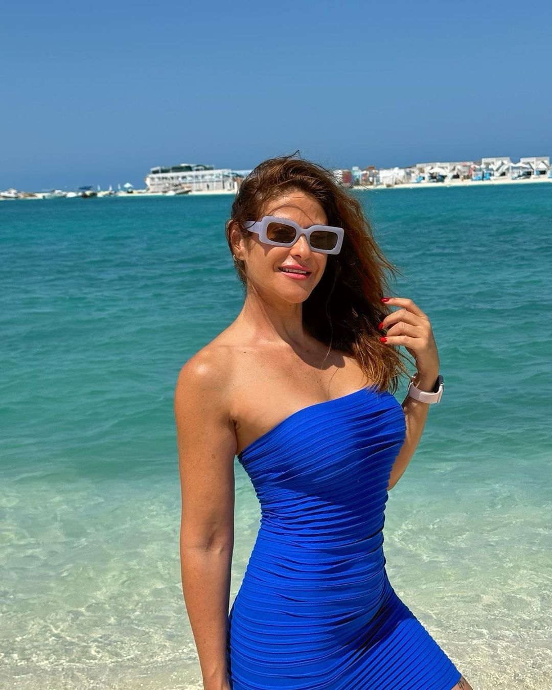 وظهرت هيدي خلال الصور وهي تستمتع بإجازتها على البحر، مرتدية فستانا أزرق جريء، ونظارة شمسية وعلقت: "الأزرق هو البساطة والجمال".