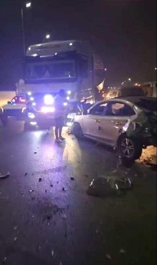 وبلغ عدد المصابين إلى 24 شخصاً -وفقاً لبيان وزارة الصحة- في حادث تصادم كبير بين سيارات ملاكي ونقل أعلى طريق نفق حازم حسن للقادم من أكتوبر باتجاه المريوطية.