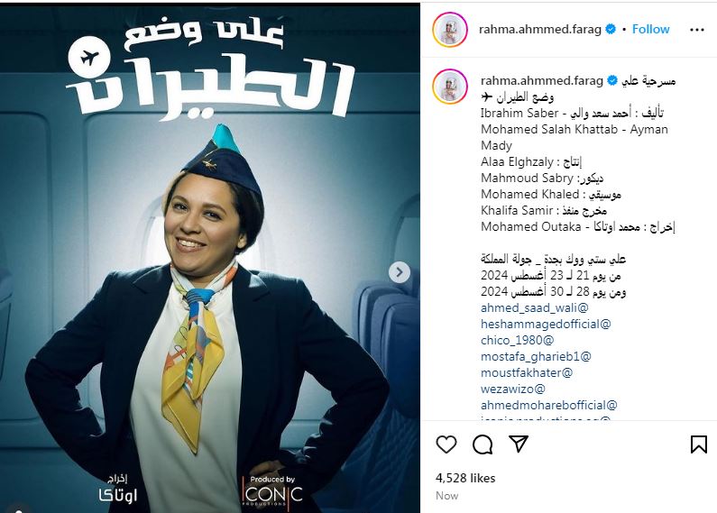 استعدادا لعرضها في السعودية.. رحمة أحمد تروج لـ مسرحية "علي وضع الطيران"