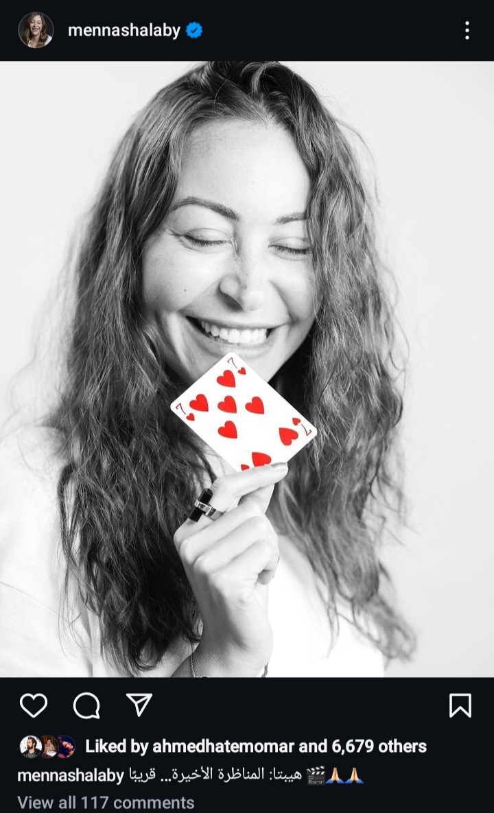 ونشرت منة بوستر دعائي لها وهي تمسك بورقة "كوتشينة"، معلقة: "هيبتا- المناظرة الأخيرة.. قريبًا" .