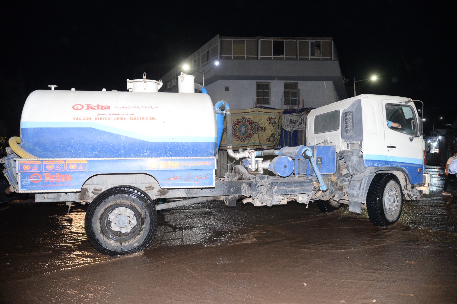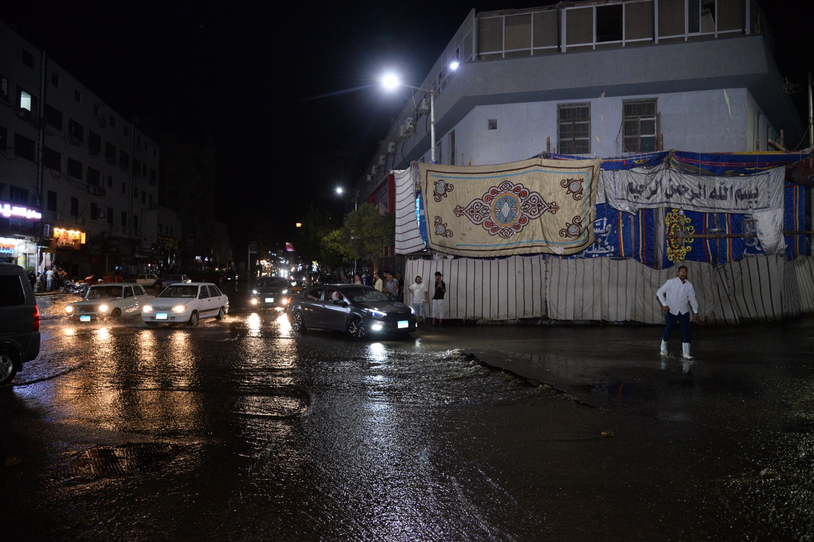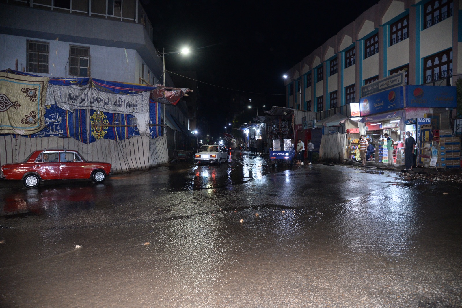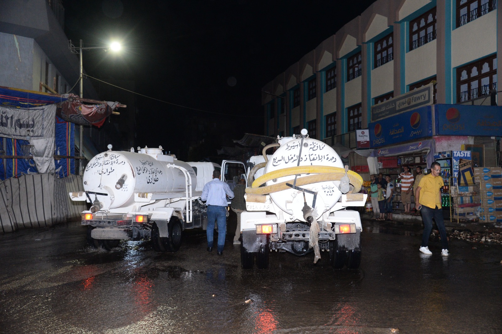 فقد قام أبوالنصر، بالتوجه إلى موقع البلاغ أثناء جولته الميدانية ليلاً، ووجه على الفور وحدة الإنقاذ السريع بالانتقال إلى موقع البلاغ وكذلك بالاستعانة بجميع سيارات كسح المياة من المراكز والمدند والاحياء وتوجيهها إلى موقع البلاغ، وقد تمت أعمال رفع المياة من الجراجات والبدرومات والمخازن بالبنايات السكنية التي تدفقت إليها المياه بالمنطقة، وباشرت فرق الصيانة أعمالها فى وقت متأخر من الليل مع تواجد طوارئ الغاز والكهرباء والتليفونات لعمل اللازم بالموقع .