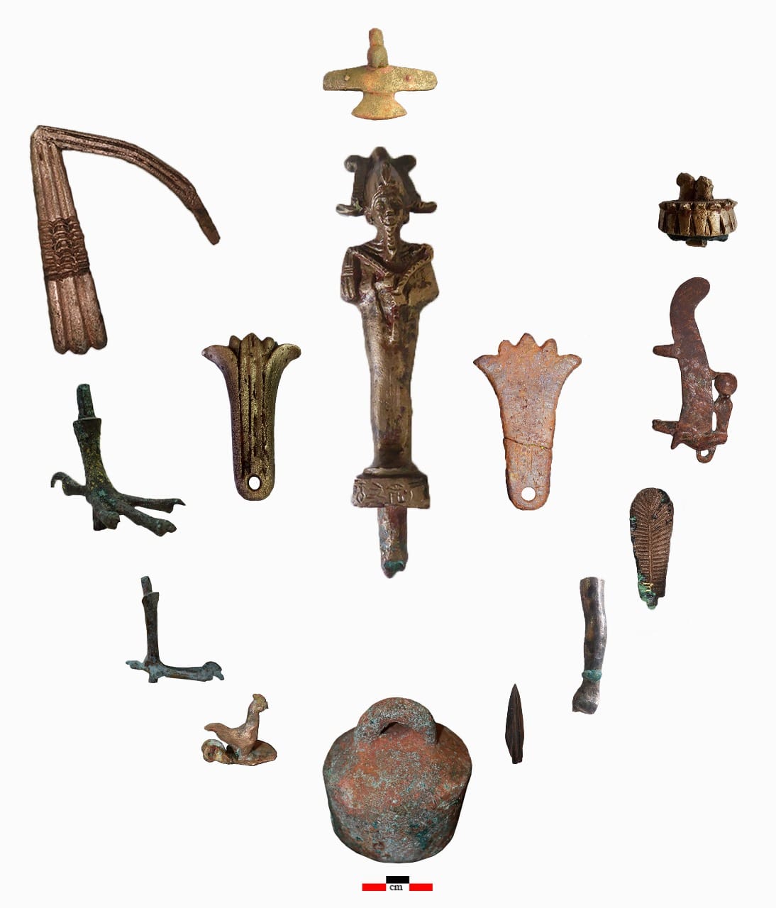 ومن المكتشفات التي تمكنت البعثة الأثرية المصرية العاملة العاملة بمعبد "بوتو" في منطقة تل الفراعين بمحافظة كفر الشيخ، تمثال من الجرانيت الرمادى من عصر "واح إيب رع" من الأسرة السادسة والعشرين، وهو للكاهن بسماتيك سمن ويحمل تمثال المعبود أوزير ومدون عليه لقب حامل الختم الملكى، كما عثر أيضا على أداة المرخت التى تستخدم فى أعمال القياس، وكذلك القدم والإصبع وغيرها من أدوات القياس، بالإضافة إلى تمثال أوزير والنمس من البرونز، و تمثال تراكوتا للمعبود بس، وقلادة المنيت من الفاينس وبعض بقايا لوحات حجرية عليها بعض النقوش وموائد قرابين وبعض الأغطية لأمفورات من الملاط عليها بقايا أختام ترجع للعصر الصاوى، بالإضافة إلى تمثال للمعبود بتاح من الفاينس الأزرق، وبعض الرموز الدينية من الفاينس والتي تمثل أشكال مركبة للجد والواس والتاج المركب، وبعض اللقى الأثرية من الفخار المختلفة فى الأشكال والأحجام المستخدمة فى الطقوس الدينية والحياة اليومية.