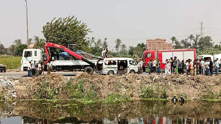 انتشال سيارة ميكروباص سقطت في ترعة المريوطية بأبو النمرس
