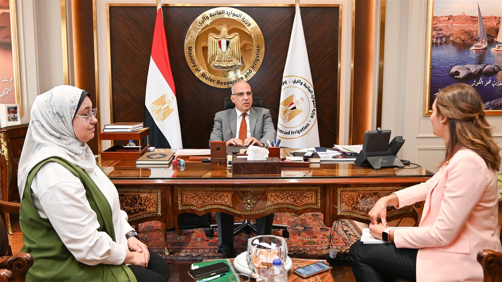 التقي الأستاذ الدكتور هانى سويلم وزير الموارد المائية والرى بعدد من السادة أعضاء مجلس النواب للتباحث حول عدد من المطالب الجماهيرية بالدوائر الخاصة بهم ، حيث التقى سيادته بكل من النائبة سحر صدقى عن محافظة قنا ، والنائب امين مسعود عن محافظة القاهرة ، و النائبة سحر معتوق عن محافظة البحيرة ، و النائبة رغدة نجاتى عن محافظة الوادى الجديد .