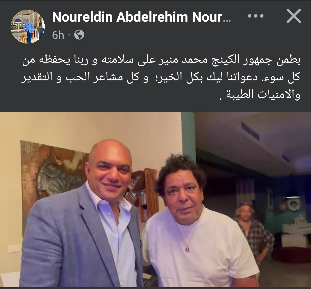 جدير بالذكر، نشر الطبيب مقطع فيديو على صفحته الرسمية عبر موقع التواصل الاجتماعي "فيسبوك" وعلق قائلا : "بطمن جمهور الكينج محمد منير على سلامته وربنا يحفظه من كل سوء، دعواتنا ليك بكل الخير، وكل مشاعر الحب والتقدير والأمنيات الطيبة" .