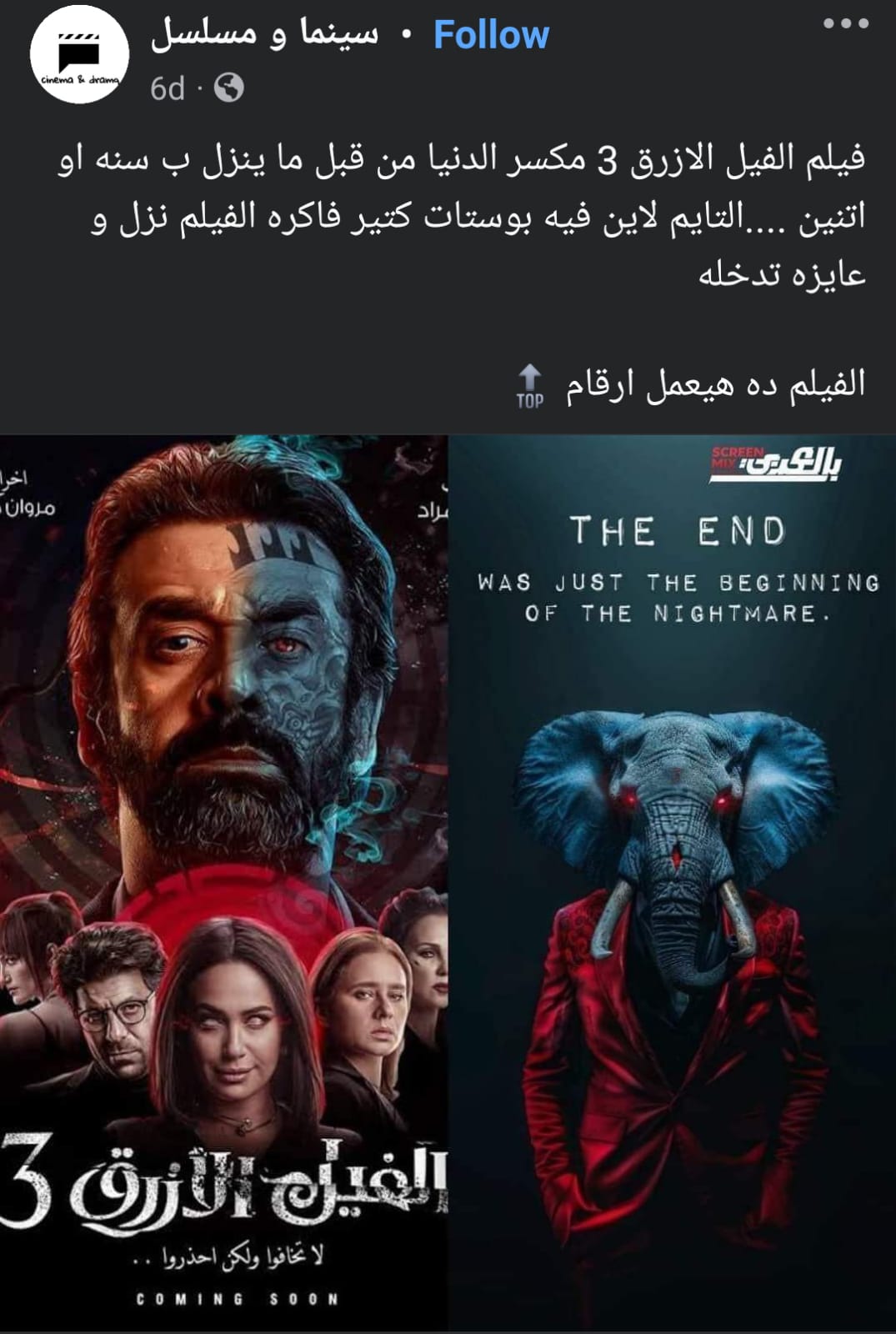 وفي وقت سابق، أعلن المستشار تركي آل الشيخ رئيس الهيئة العامة للترفيه عن دعم فيلم "الفيل الأزرق 3" وتوفير كل الإمكانيات المطلوبة لصناع الفيلم .