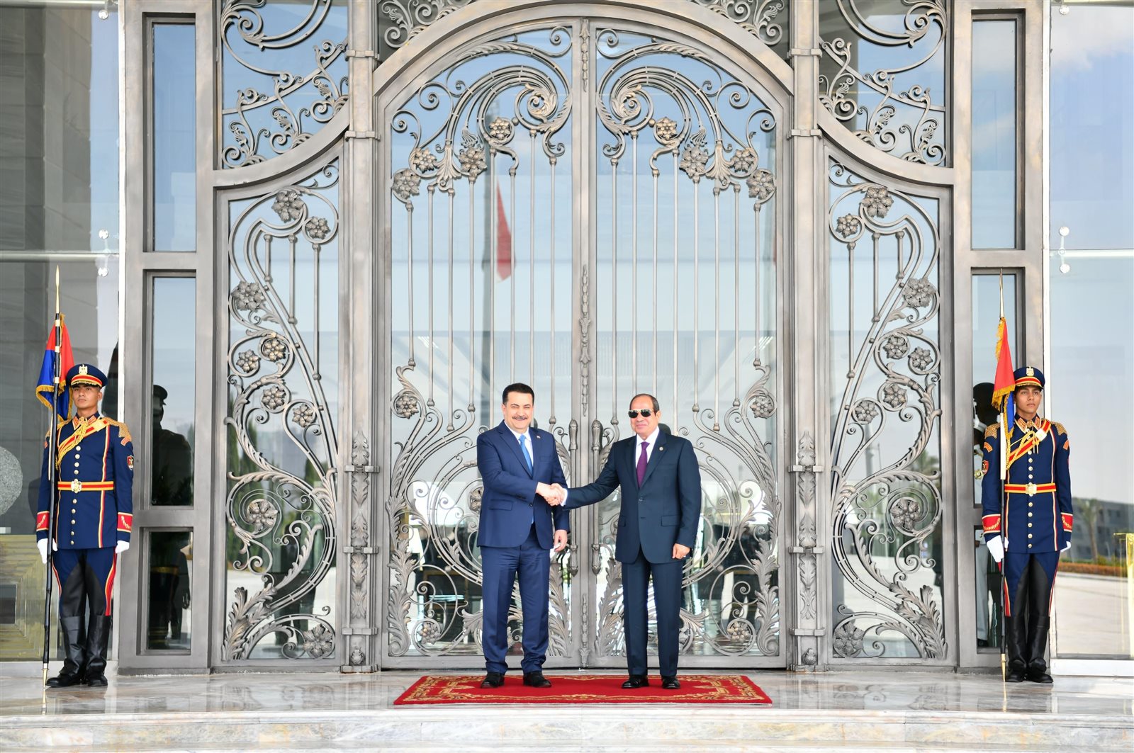 استقبل السيد الرئيس عبد الفتاح السيسي، اليوم، رئيس الوزراء العراقي "محمد شياع السوداني"، الذي يقوم بزيارة رسمية لمصر، على رأس وفد حكومي عراقي رفيع المستوى، يضم نائب رئيس الوزراء وزير الخارجية، ووزير التجارة، وعدد من كبار المسئولين العراقيين، وذلك بحضور الدكتور مصطفى مدبولي رئيس مجلس الوزراء، والسادة وزراء الخارجية، والإسكان، والاستثمار، والبترول، من الجانب المصري.