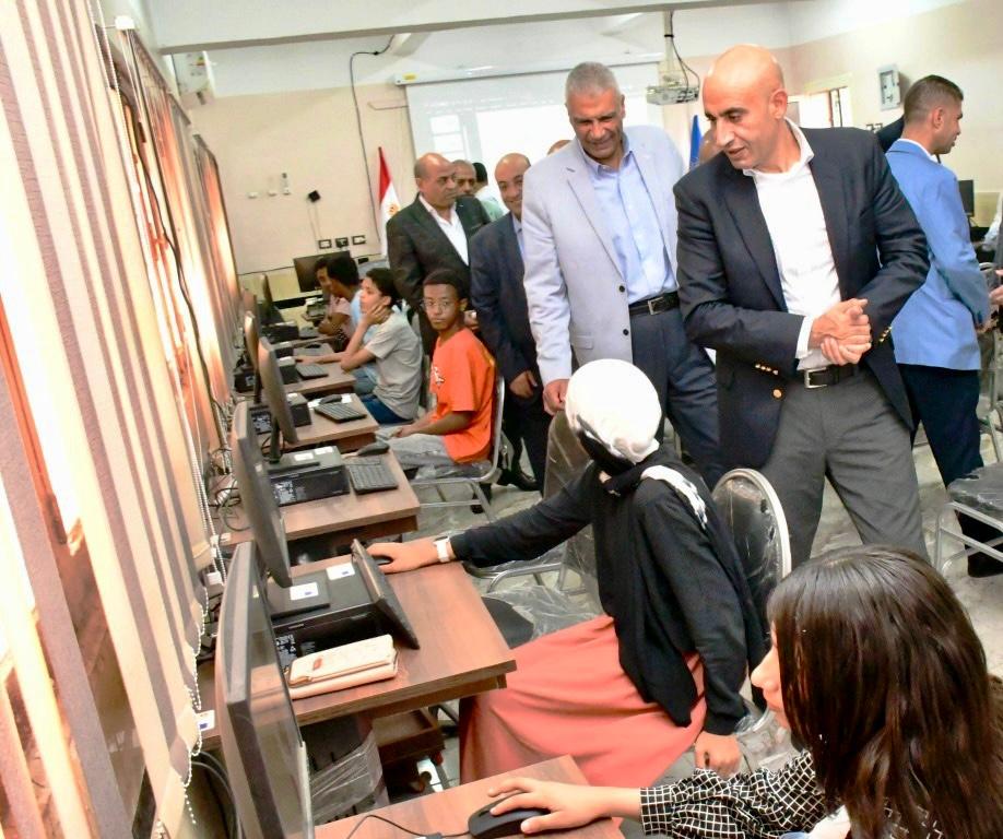 وعقب ذلك، قام الوزير والمحافظ بتفقد مدرسة أحمد طه حسين الثانوية التي تضم ١٢٥٥ طالبا وطالبة، حيث تفقدا معمل الحاسب الآلي بالمدرسة خلال تقديم دورة تدريبية لعدد من الطلاب، واستمعا لشرح بعض الطلاب حول مدى استفادتهم من هذه الدورات في إثراء مهاراتهم.