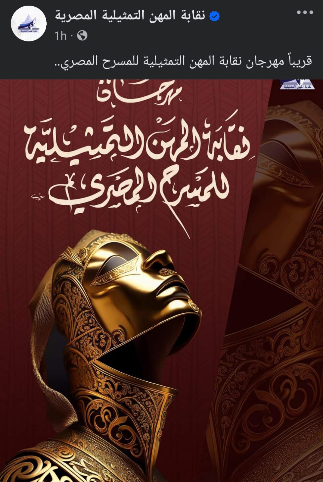 نشرت نقابة المهن التمثيلية صورة البوستر الرسمي للمهرجان على الصفحة الرسمية عبر موقع التواصل الاجتماعي "فيسبوك" وعلقت قائلة : "قريبا مهرجان نقابة المهن التمثيلية للمسرح المصري" .
