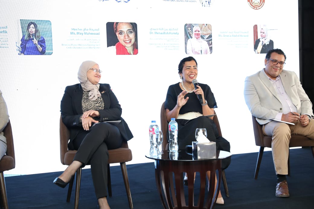 وخلال الجلسة الثانية "الممارسات الجيدة والدروس المستفادة من مصر - نتيجة البرنامج المشترك : دعم القطاع الخاص المستجيب للمساواة بين الجنسين والذي يجذب النساء ويحافظ عليهن ويعززهن" استعرضت الأستاذة مي محمود جهود الدولة المصرية لتعزيز التمكين الاقتصادي للمرأة ومشاركتها فى سوق العمل والقوانين التي تم تطويرها وتفعيلها لتمكين المرأة إقتصادياً ، وأكدت أهمية استخدام وسائل التواصل الاجتماعي لتوعية الشباب بمفهوم المساواة بين الجنسين في مجال العمل.